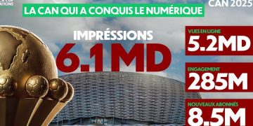 La CAN 2025 restera comme bien plus qu’un simple tournoi. Pendant plusieurs semaines, l’Afrique a vibré au même rythme, dans les stades comme derrière les écrans. Selon la Confédération africaine de football, la compétition a atteint un seuil inédit avec près de 6 milliards de vues cumulées sur les réseaux sociaux. Un chiffre qui traduit … Lire la suite de CAN 2025 : La CAF annonce des records d’audience historiques au Maroc